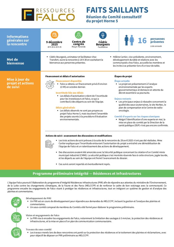 FAITS SAILLANTS – COMITÉ CONSULTATIF – DÉCEMBRE 2025